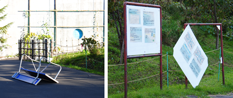 ホッキョクグマの看板が割れてはずれたり、ベンチが倒れたり・・・