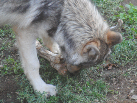 放飼場内のあちこちにある、骨をかじったり舐めてたりしていたルーク。