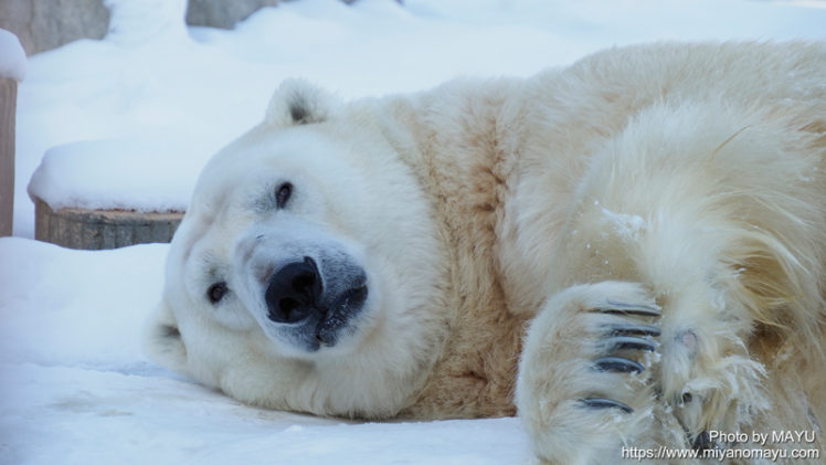 しろくまにっき しろくまにっき 3500 静寂の中で 雪の上でゆったりと休むデナリ。動物園で生まれ、暮らしているから、比較的傍に人が立っていても、平気で寝ていますね。静かにしていると、デナリの寝息まで聞こえます。 2019.12.09 0 しろくまにっき
