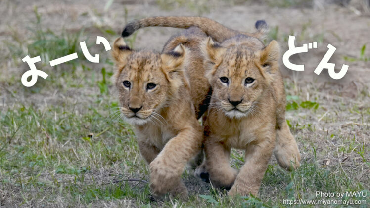 豊橋総合動植物公園(のんほいパーク)で2025年8月17日(日)に誕生した子ライオン、左デン(オス/2ヶ月)と右アル(オス/2ヶ月)。この2頭はオス同士だからか、よく競うように遊ん...