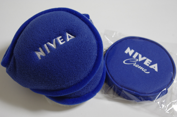 後ろから付けるのタイプのたためるイヤーマフと、ニベアの限定缶56g(オリジナルポーチ付き)でした。