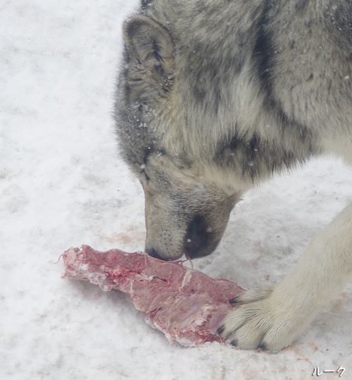 今日は、骨付きの大きな肉をもらったルーク。