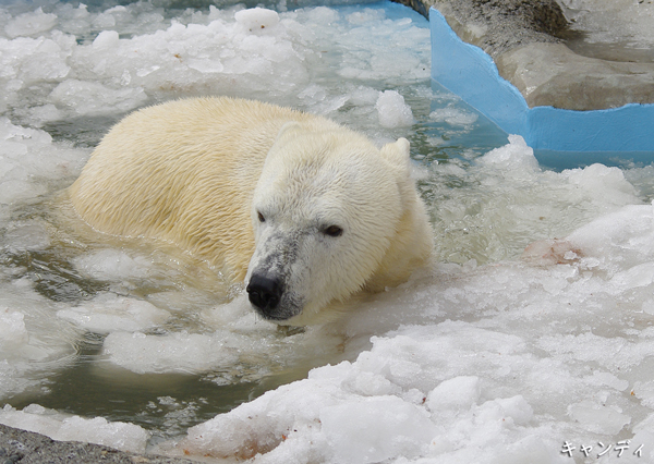 キャンディは、スキを見ては、何度もプールに入りに行きました。