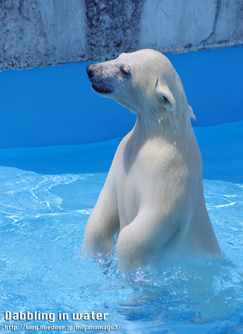 満水前の浅いプールで、じゃぶじゃぶと、ひとり遊びをしていたこぐまでした。
