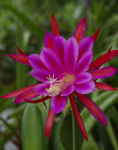 クジャクサボテンは留守の間に咲いてしまって仕事を終えて