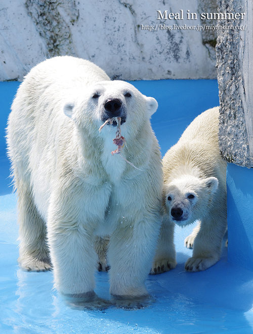 それからは、取られないように、水の中に入れてから、再び堀に下りた、賢い子グマでした。