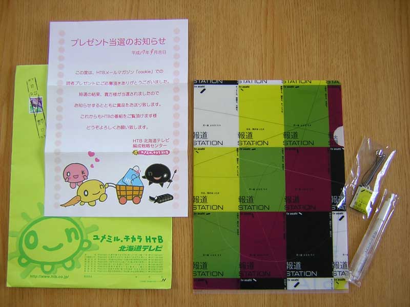 今日、北海道テレビ(HTB)の懸賞に当たりました。