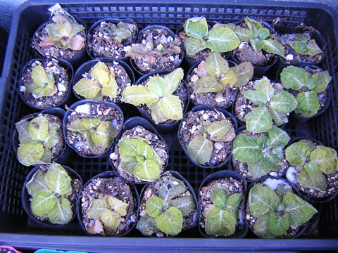 外に置きっぱなしの、苗たちはすっかり凍りついています。