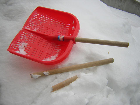 いつもは雪かき部分が割れるのに、今回は柄の部分がポキン。