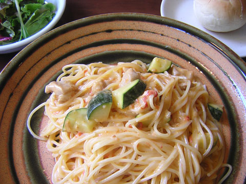 パスタは少し細めで、おいしい茹で加減、ソースとの絡みがとてもよく、