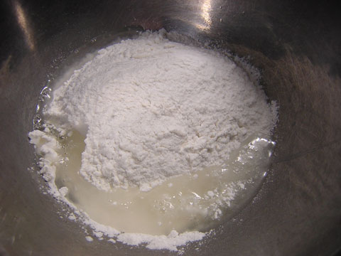 ここで気をつける事は、少しずつ砂糖水を加える事です。入れ過ぎると、ゆるくなりますから、この分量はあくまで、目安にされるといいと思います。入れる量を加減するか、余分な粉を少し用意しておくといいと思います。