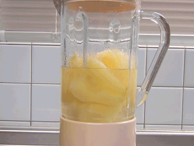 材料の全て(缶汁も)をミキサーに入れ、なめらかになるまで、混ぜるだけです。