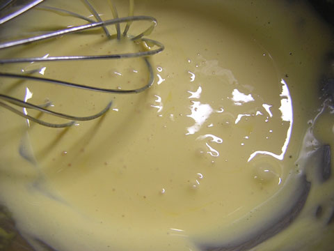 1.卵黄と砂糖を合わせて、白っぽくなるまで、すり混ぜる。