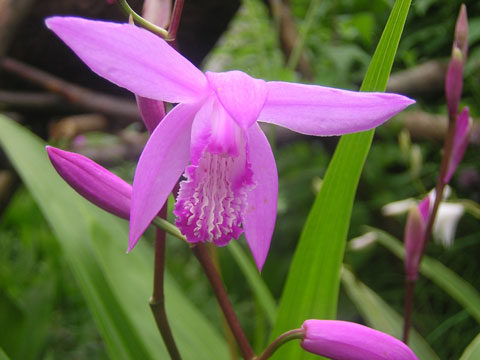 スポンサーリンク シラン 2006.06.30 こちらも、今よく見かける、ひっそりと咲く花、シランです。 丈夫で、植えっぱなしでも、ちゃんと咲いてくれるので、 どちらのお宅でもよく見かけるなあ・・なんて思っていたら、 今日は、白いシランを見つけました。 こちらも、清楚で素敵。