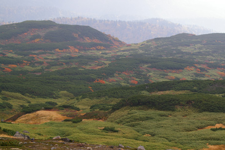 2000m近くなると、遠くの山々の色がきれいな秋色のパレットに見えてきます。