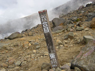 雲の中、足下に気をつけながら、歩いていけば、あっけなく頂上。(所要時間2時間)
