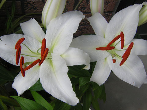 スポンサーリンク 百合(カサブランカ) 2006.08.15 同時に二つ咲きました。 やはり、かなり良い香りがします。 この花粉はやはりとろうかな。 服に付いたら大変だし(落としにくい)、花びらに移っても、 白の花色が汚くなってしまうから・・