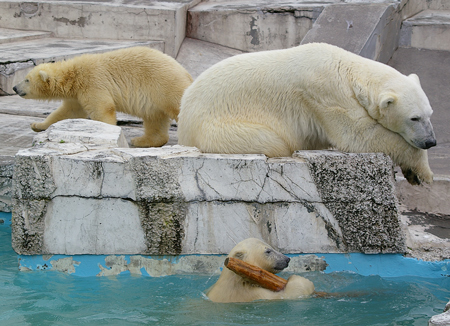 子供たちがお昼寝の最中、プールの水を飲みに来た、ララ。