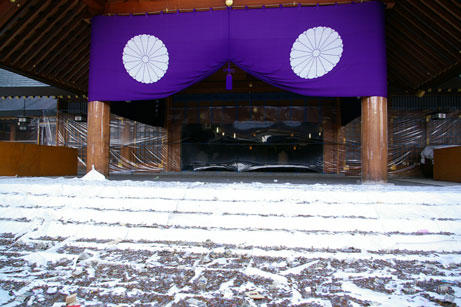 二日の午後は、チラチラと粉雪の降る、ひっそりとした境内でした。