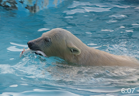 今日の登場(18時)から、プールイン、魚をおいしそうに食べるクーの様子。