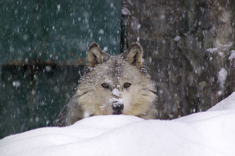 オオカミの鼻の頭にも、容赦なく降り積もる・・・