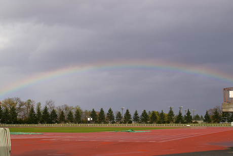 おまけで、円山競技場に架かる、今日の虹の橋。