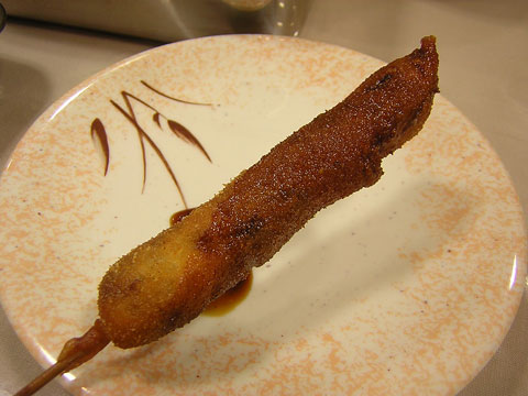 だるまの串揚げ各種 ソースの2度付け禁止 衣がきめ細かくて美味しい