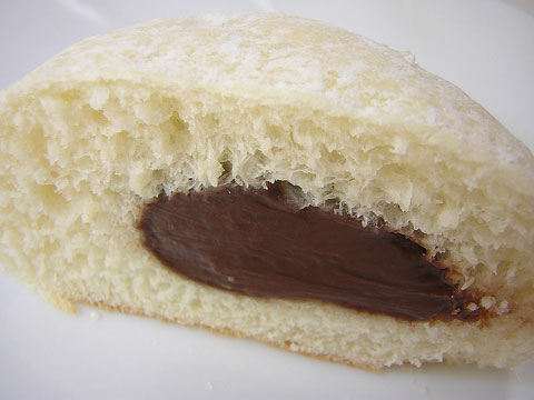 ホワイトローフの生地に粉糖がかかっていて、中には、チョコクリームたっぷり。