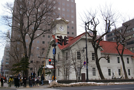 大通公園には、すでに雪まつりの雪像作りの準備が始まっています。