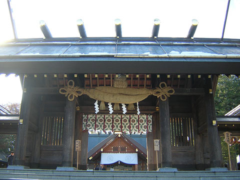 北海道神宮はきっと上位ね 道路にそびえ立つ第一鳥居