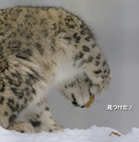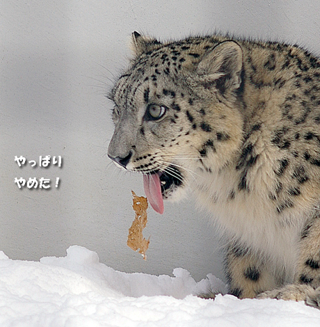 スポンサーリンク ユキヒョウ物語 215 2010.02.08 たくさん積もった雪の一部から、何か見つけた、ユッコ。 どうやら、すみっこに、枯れ葉が入り込んでいたらしい。 くわえてみたものの・・・ 舌にぺったりつくので、やめたようです。 木片ガジガジの方が、好きかな?