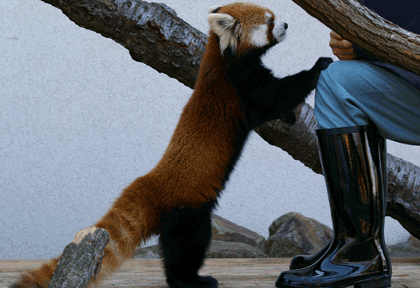 飼育員さんの手にあるものが気になってしかたなく、おねだりポーズ。