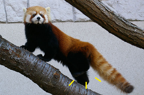 レッサーパンダは、お昼頃に行くと、こうして室内の木の上で丸まって寝ている事が多いです。