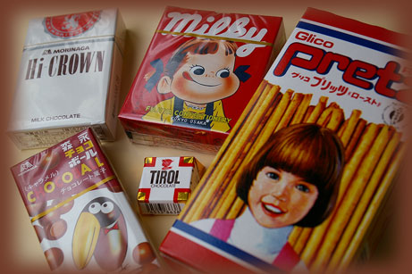 最近では、逆にすっかりお馴染み?レトロなパッケージのお菓子たち。