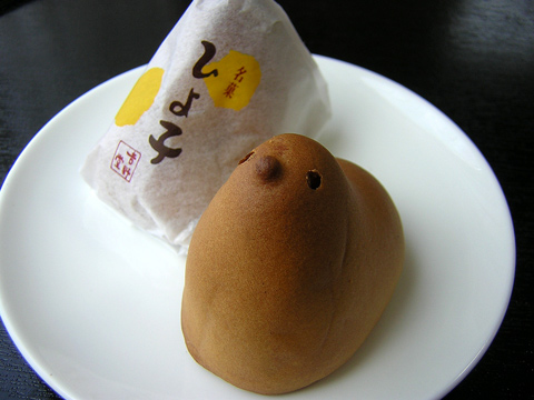 かわいらしい形のおまんじゅうで、中のほっこり黄味餡がとってもおいしいです。