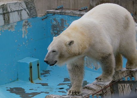 雨が降ると、さらに寒く感じるホッキョクグマ舎。