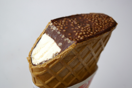 コーンの内側全面が、パフ入りチョコでコーティングされているので、