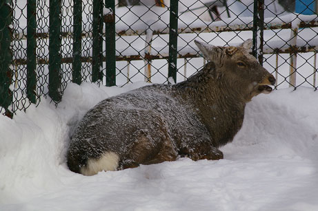 無駄な体力は使わない?じっとやり過ごすように見える、エゾシカ。