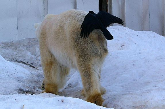 ロデオのように、デナリのおしりに乗っかって、足で毛をむしっていきます。