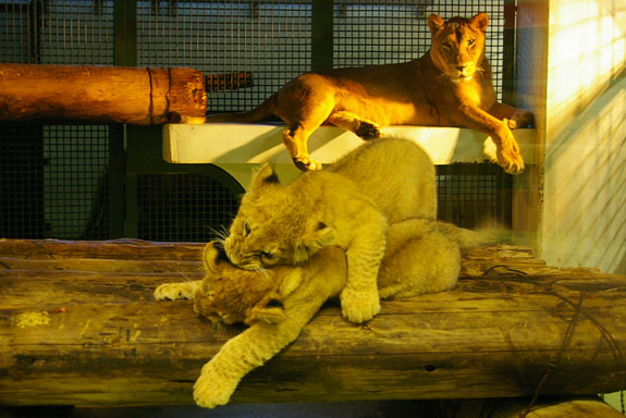 隣のトラが気になる、2頭。並んだ姿は、本当に微笑ましい。(手前がメスッチ)