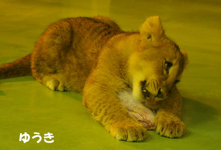 早く、ゆうきと遊びたいものだから、ゆうきの肉を奪ったり、ちょっかいをかけます。