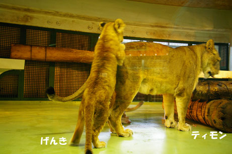 ライオンの母子は、まだ、大事に獣舎内で過ごしています。
