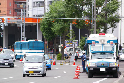 札幌市中心部は、特に、交通規制が厳しく行なわれていました。