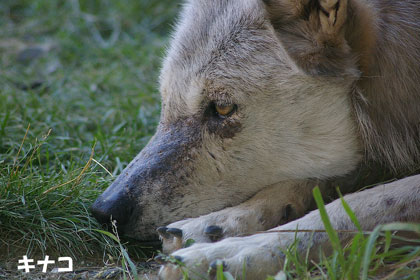 シンリンオオカミの、キナコとジェイは、揃ってお昼寝中。