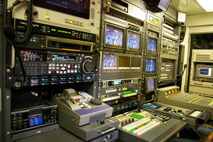 市内でもよく見かける、ハイビジョン中継車の中も、見せていただきました。