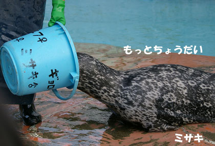 飼育員さんは、隣のゴマフアザシの方に行ってしまいました。