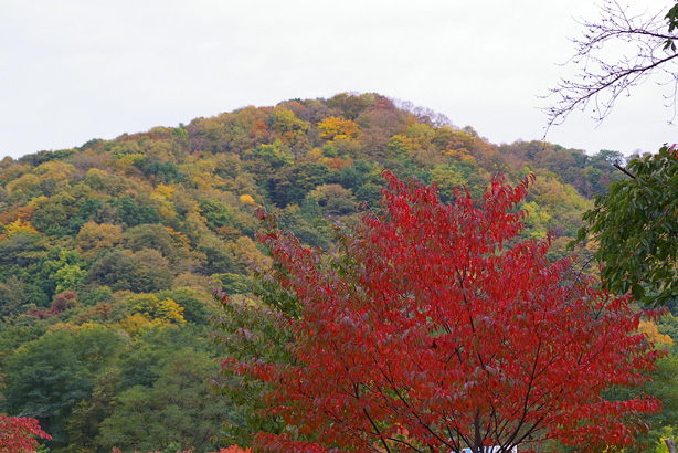 エゾヤマザクラが、全て真っ赤に染まりました。