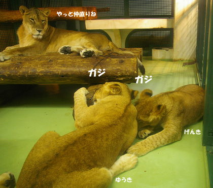 けんかして・・ガジガジして・・すっかり疲れたのか、またバタンとひと休憩。