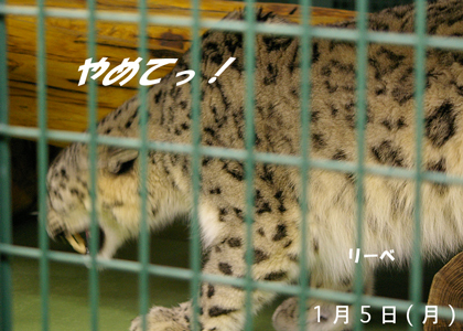 1月1日から一般公開されている、ユキヒョウのアクバル(オス)とリーベ(メス)の同居訓練。