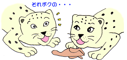 穏やかに同居生活を送っている、ユキヒョウペア。
